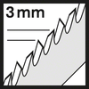 中等齿距(3 mm)和长锯条长度(117 mm)可切割厚度为10-65 mm的木材
