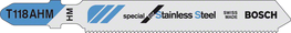 T 301 CD木材切割光洁型曲线锯条可光洁直线切割木材。 它的精密研磨齿和锥形研磨主体可实现极为光洁的切割结果。 此锯条采用高碳钢制成,适于切割软木和非研磨木工材料。 它具有中等齿距(3 mm)和长锯条长度(117 mm),能够切割厚度为10-65 mm的木材。 搭配具有T形柄夹持系统的曲线锯使用。