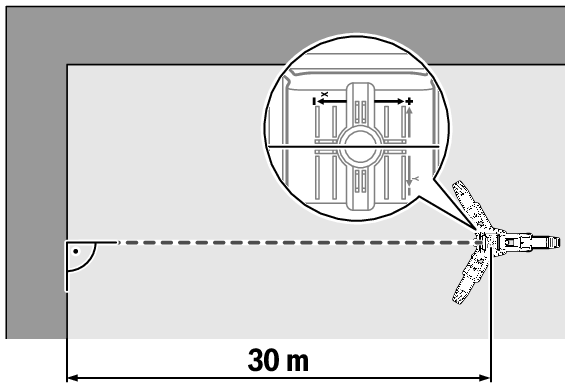 為了進行校正作業,您必須在牆前的穩固地面上找出一段無障礙物、長度 30 m 的測量距離。
