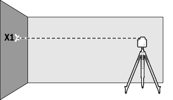 在牆上標出雷射光束的高度,此即為 X1 高度。此時,請您視需要使用雷射接收器 (37)。