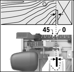 运行模式调整切割深度(参见插图 C)请根据工件厚度调整切削深度。不可以让锯齿完全突出于工件之外。请松开夹紧杆 (7)。如需减小切削深度,请将锯片拉离底板 (15) ,如要增大切削深度,请朝底板 (15) 按压锯片。参考锯深刻度尺调整好锯深。请再次拧紧夹紧杆 (7)。夹紧杆(7)的夹紧力可以重新调节。为此拧下夹紧杆(7),然后将其逆时针方向至少错开30°度重新拧紧。调整斜角角度最好将电动工具放在防护罩(17)的正面。松开斜切角预选夹紧杆(9)。将电锯移到侧面。在刻度(8)上调到所需的尺寸。请再次拧紧夹紧杆 (9)。提示:斜切时,切削深度小于锯深刻度尺 (20) 上显示的数值。切割标记切割标记(12)表示直角切割时锯片的位置。为了确保锯切尺寸准确,请按照插图所示将圆锯放到工件上。最好先进行试锯。