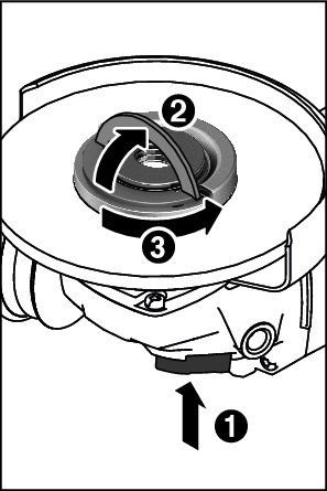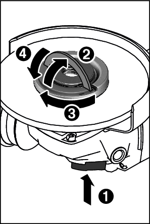 如果安装正确而且快速夹紧螺母(18)未损坏,就可以用手松开快速夹紧螺母。请向上翻起快速夹紧螺母的夹箍并逆时针用力旋转快速夹紧螺母。对于卡住的快速夹紧螺母,切勿使用工具,而是要用双销扳手松开。