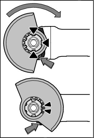- 唯有通过操纵解锁杆(1)才能使防护罩(11)沿附件的旋转方向转动!否则,在任何条件下都不得继续使用电动工具,必须将其交给客户服务部门。