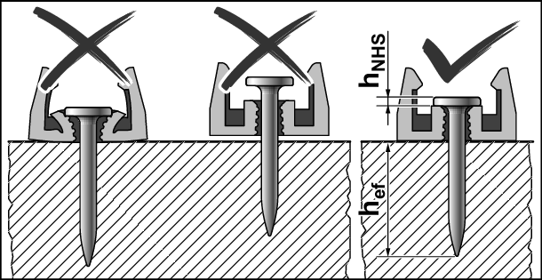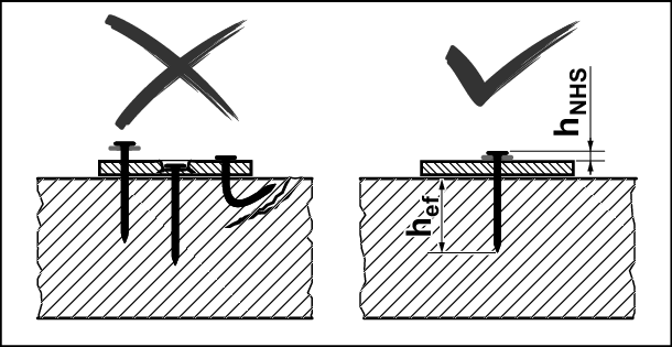 如果因钉入操作失误而损坏了混凝土,则必须按照公认的规则进行修复。