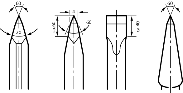 在砂轮(例如白刚玉)上研磨凿具,并使用均匀的水流冲刷。注意,刀刃上不可以出现回火色;这样会影响凿具的硬度。